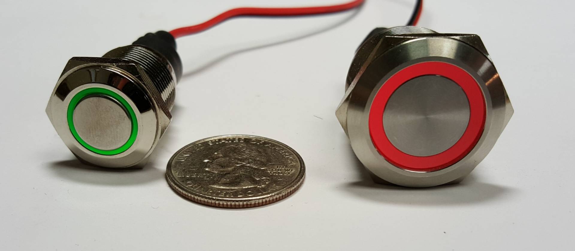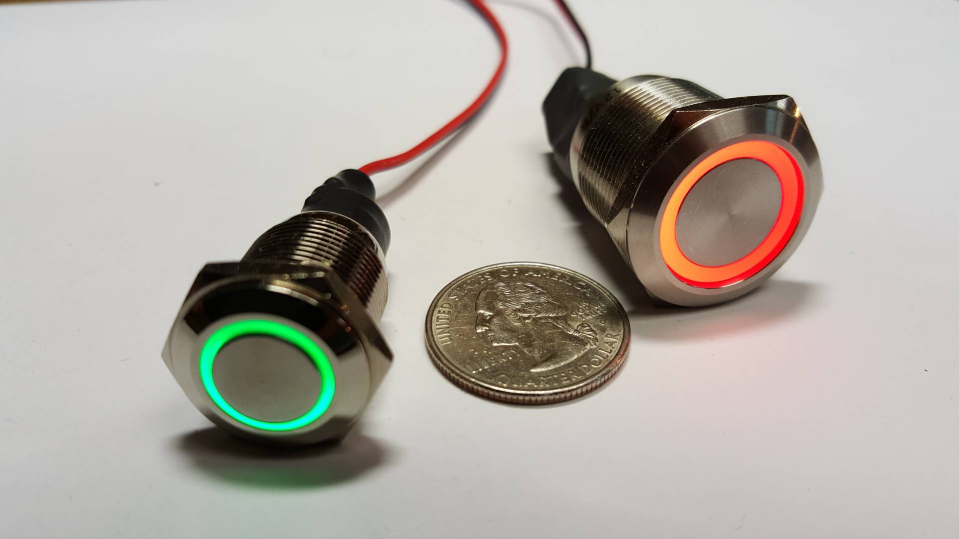 Choose between momentary or latching (on/off) function. The LED ring is wired separately, so you can set it to glow only when the circuit is live, or wire it to your parking lights as a locator. We build them to work with positive or ground switching setups.